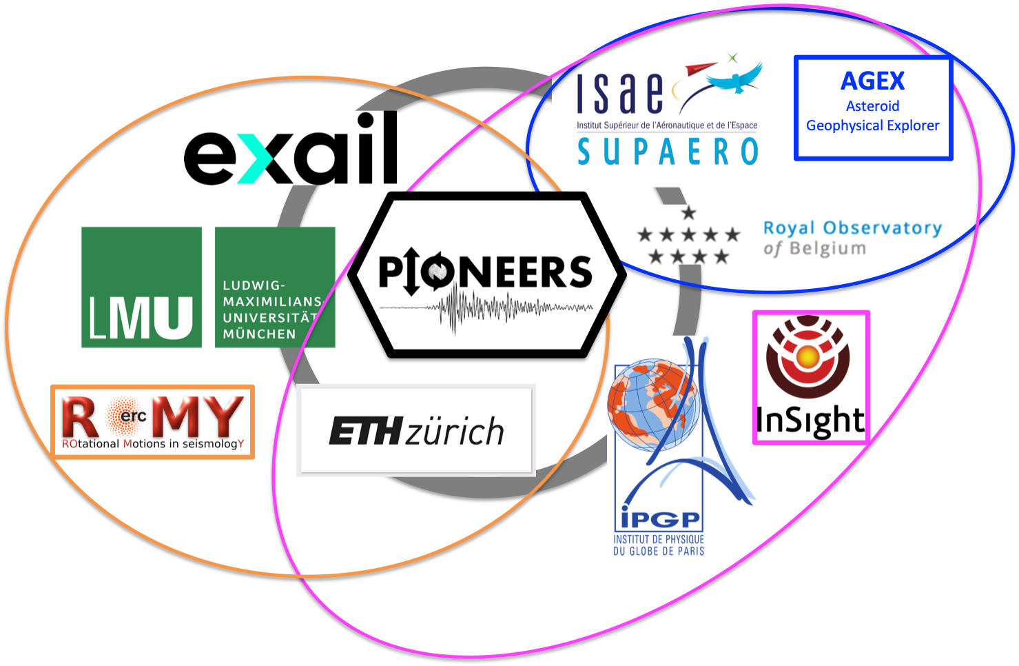 The PIONEERS consortium is led by ISAE-SUPAERO (France) and involves industry and research institutes from four different European states. The interdisciplinary team consists of the 5 research organisations ISAE-SUPAERO, LMU (Germany), ROB (Belgium), ETHZ (Switzerland) and IPGP (France), and the industrial company exail (formerly iXblue, France). All partners have an extensive expertise in the field of planetary observation and have been previously involved in several European and national R&D collaborative projects, such as InSight and ROMY.